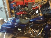 Tourpack is off my now departed Road King Classic. All parts for this detach hardware rack were purchased at Home Depot. I ran plastic tubing over the threaded bar stock and ripped a 2x4 in half